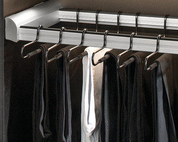 - Garment clips can be added for hanging skirts or pants by the cuff