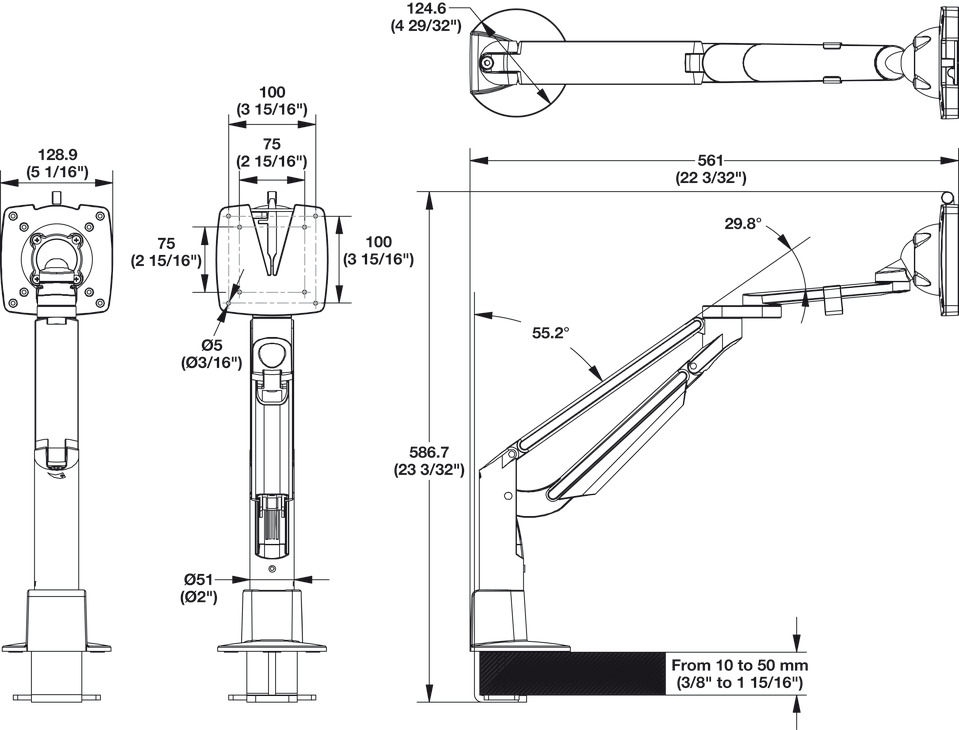 - Meets VESA mounting standards for 75mm and 100mm monitor mounting