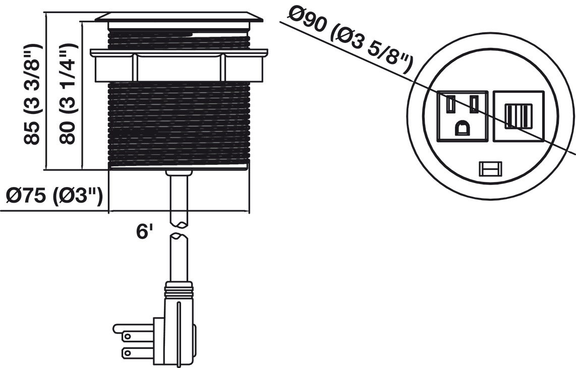 - Version : 1 AC grounded outlet 125V 15A max rating1 USB-A port @ 10.5 watts1 USB-C port @ 12 wattsWithout lid