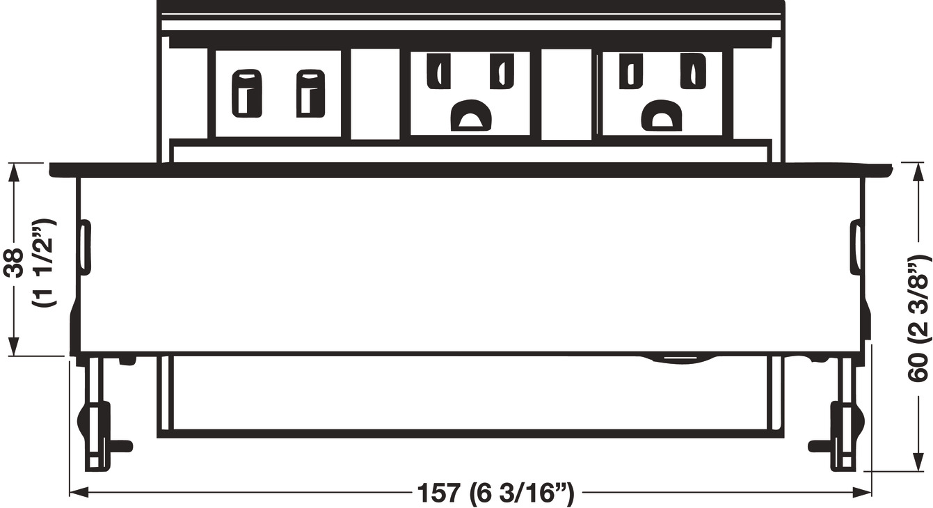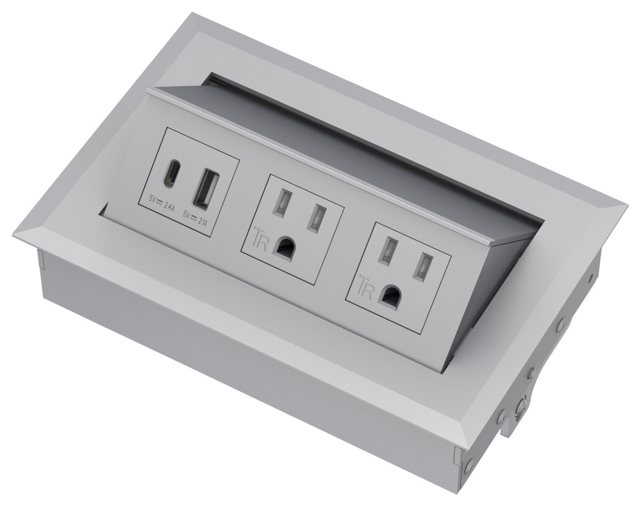 Category: Hide-A-Dock Power/Data Station, 2 AC Outlets, 2 USB Ports, Aluminum housing