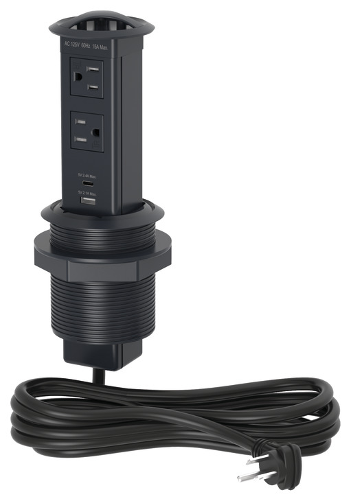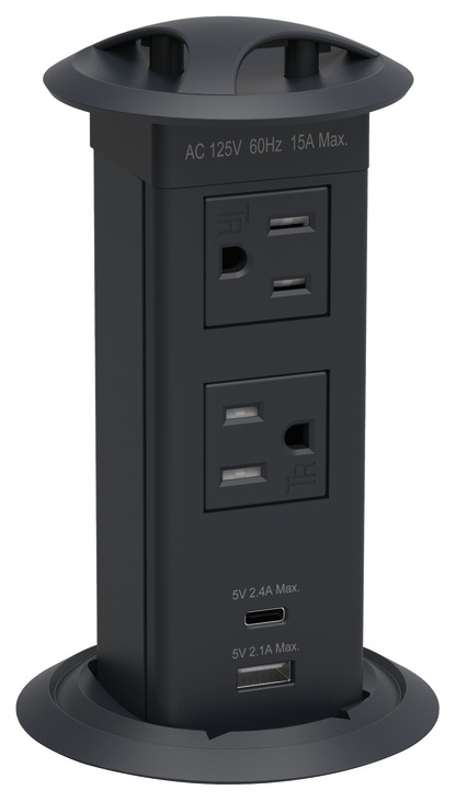 Product Title: Pop-Up Power Station, 2 AC Grounded Outlets, 2 USBs, 1 USB-A port @ 10.5 watts and 1 USB-C port @ 12 watts