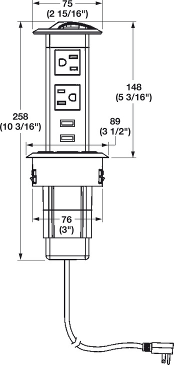 Category: Pop-Up Power Station, 2 AC Grounded Outlets, 2 USBs,