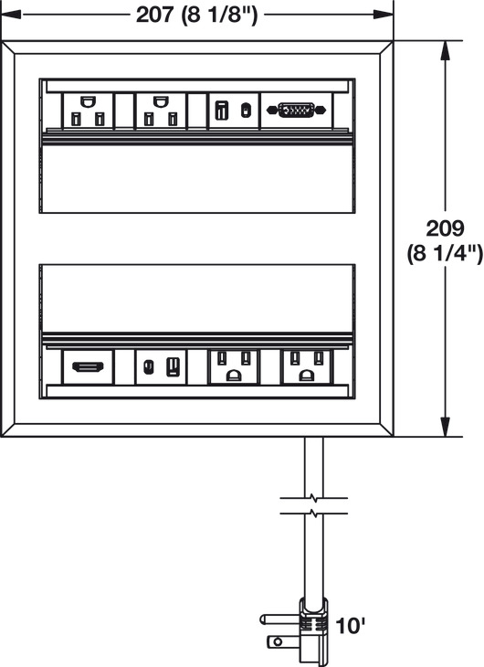Product Title: Two-Sided Power and Data Center, Dock 704, Silver
