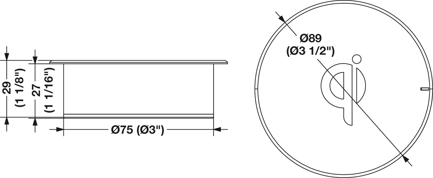 - Installation reference : Press-fits in a 75 mm (3") diameter hole