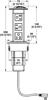 Category: Pop-Up Power Station, 3 Outlet, Plastic, black