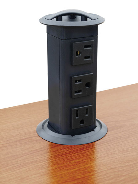 Product Title: Pop-Up Power Station, 3 Outlet, Plastic, black