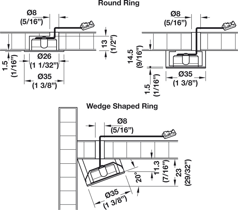 - Installation reference : suitable for mini hinge drill hole Ø 26 mmHigh-quality metal housingSplash proof for use in wet rooms