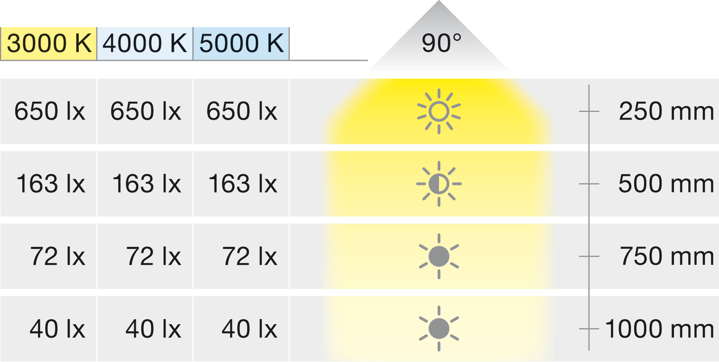 - Degree of protection : IP44 (recess mounted light); IP20 (surface mounted downlight)