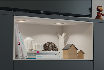- Color control via 6-way distributor Häfele Connect Mesh with multi-white adapter and remote control or smartphone. Please order separately.