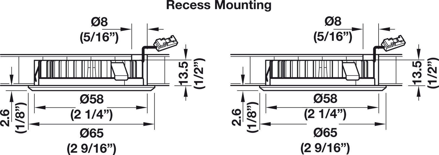Category: Modular Puck Light, monochrome, Häfele Loox5 LED 3059, aluminum, 24 V, Drill hole ?: 58 mm (2 5/16")