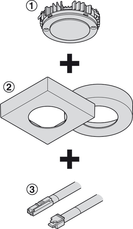 Category: Modular Puck Light, monochrome, Häfele Loox5 LED 3059, aluminum, 24 V, Drill hole ?: 58 mm (2 5/16")