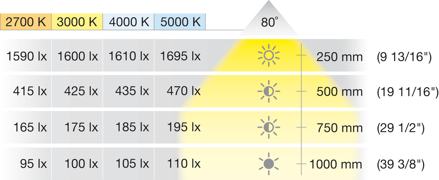 - Degree of protection : IP45 (recess mounted light); IP20 (surface mounted downlight)