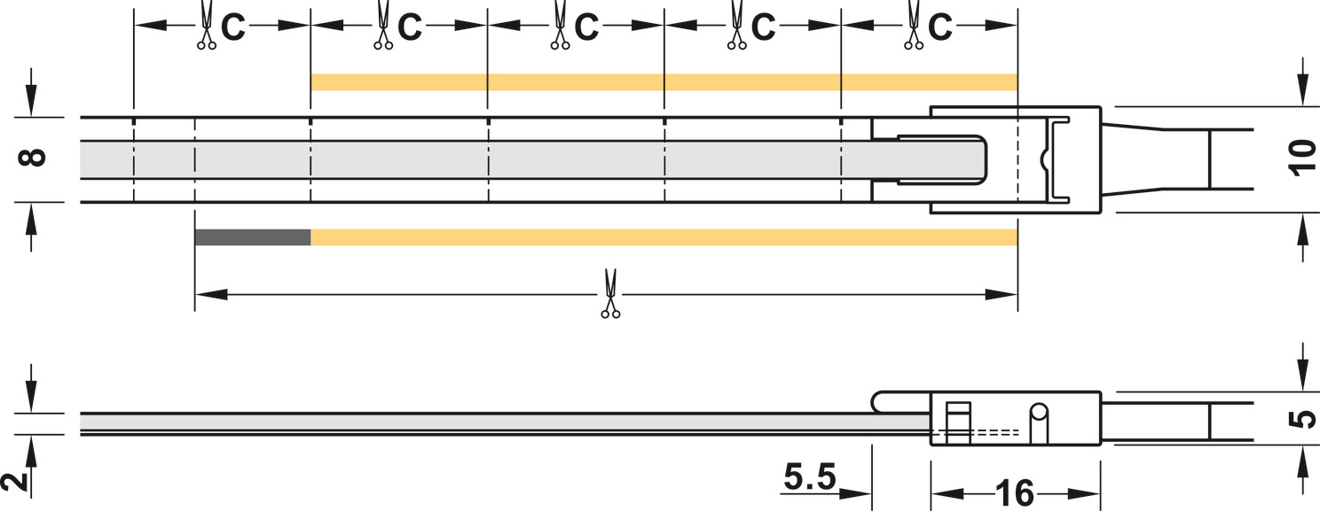 - Clip connector, For Häfele Loox5 Led Strip Light 8 Mm Cob 2-Pin (Monochrome Or Multi-White 2-Wire Technology)