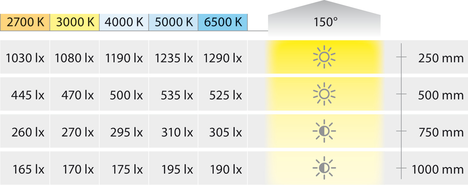 Maximum strip length (visual) describes a strip section with a visually imperceptible drop in luminous flux of max. 30 %. Please note: A strip section with a new power supply that follows immediately is noticeably brighter. Max. wattage-dependent strip length on the driver, see technical data for LED strip lights.Data Sheet
