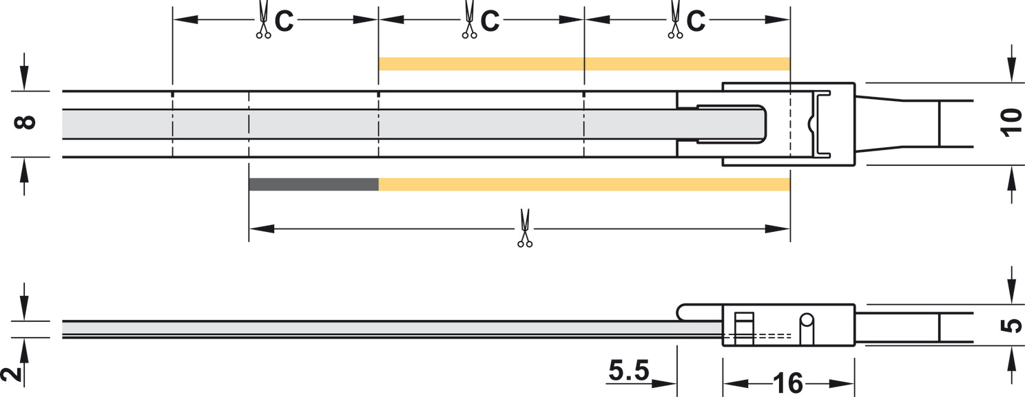 - Interconnecting lead, For Häfele Loox5 Led Strip Light 8 Mm Cob 2-Pin (Monochrome Or Multi-White 2-Wire Technology)
