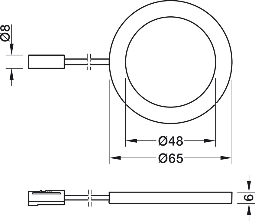 Hafele 833.77.252 Loox5 LED3035,24V, 2.5W, 4000K, puck light, 65mm x 6mm, plastic, silver, round, CRI>90, 2 meter lead