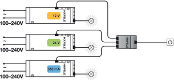 - Up to 3 LED drivers with different voltages or distributors with a switching function can be controlled with 1 switch