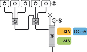 - 1 LED driver operated by up to 3 switches. Allows the LED driver or distributor with switching function to be switched on and off from different positions.