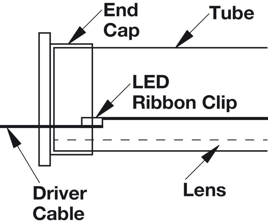 - Tube is cut 6 mm (1/4") shorter than nominal size to allow room for end caps and driver cable exit