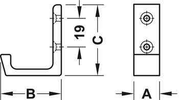Category: Coat Hook, Aluminum, Coat hook, Height 47 mm, depth 41 mm, width 17 mm, silver colored anodized