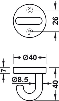 Product Title: Single Coat Hook, HEWI, Polyamide, Ceiling Mounting, Wide range of colors, Pure White; Height 40 mm; Diameter:40 mm