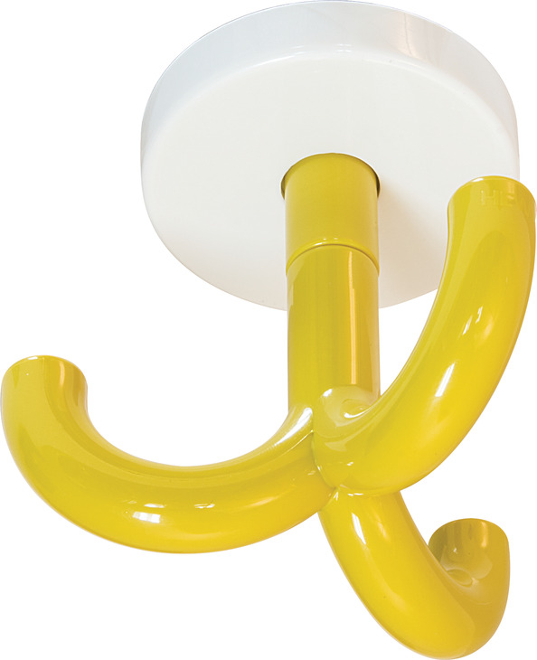 Product Title: Triple Ceiling Hook, Polyamide, White Base, Hewi, Mustard yellow