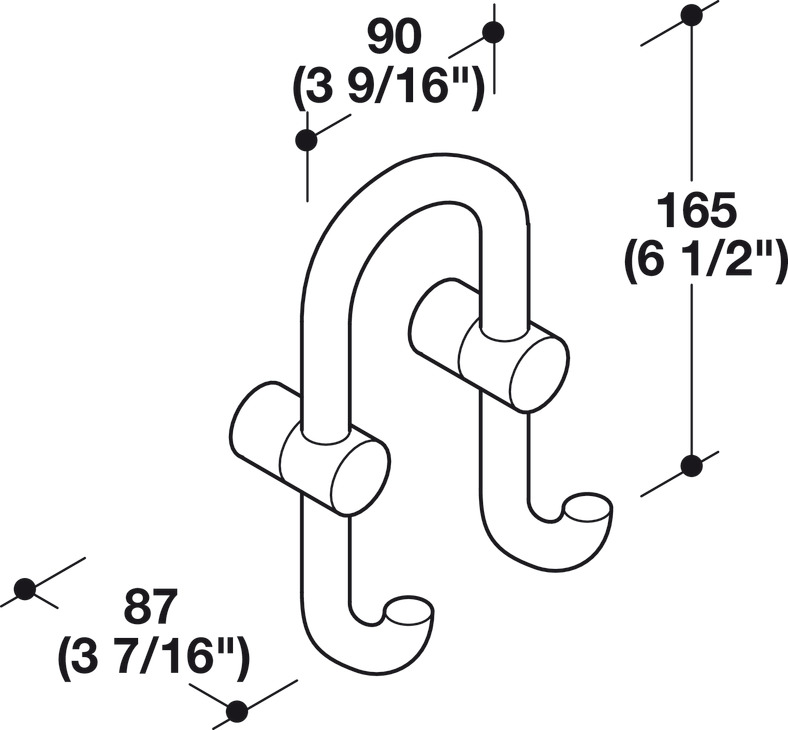 Product Title: Double Coat Hook, Polyamide, 165 x 87 mm, HEWI, Diameter:Â 15Â mm, Light gray