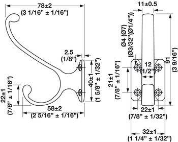 Category: Hat & Coat Hook, 32 x 78 x 91 mm (W x D x H),
