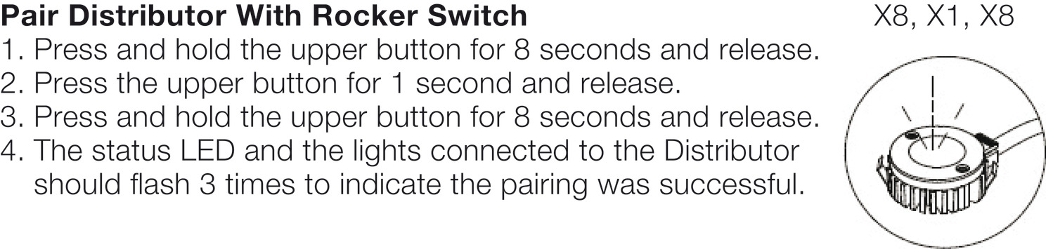 - Multiple Press to pair distributors can be paired with one or more wall switches