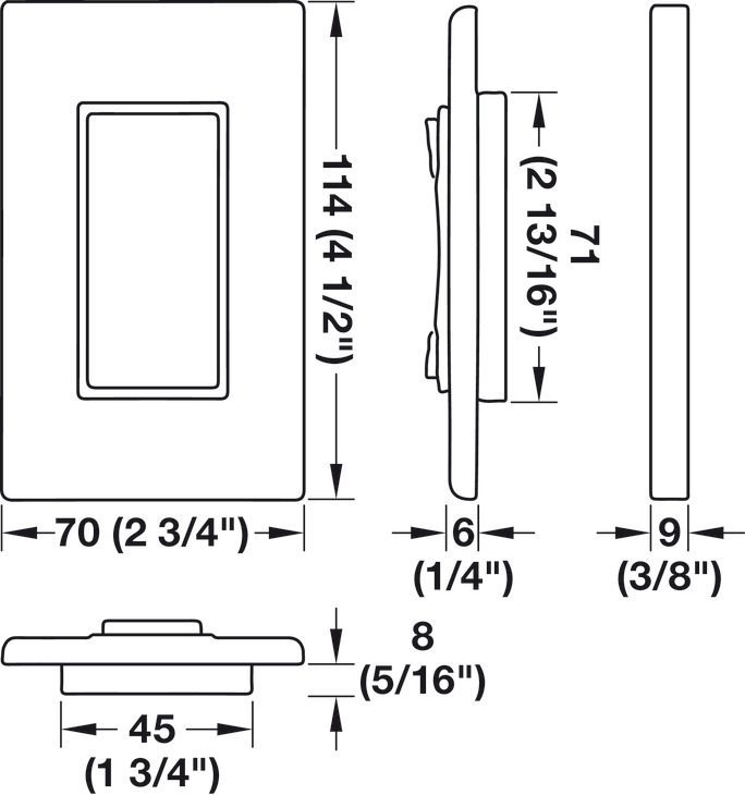 - Installation reference : Can be flush mounted over a standard switch box or surface mounted directly to the wall