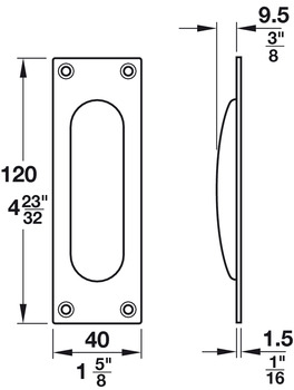Hafele 902.01.300 Flush Pull, stainless steel, matt, 120 x 40mm (each)- Hardware > Hardware Accessories > Cabinet Hardware > Cabinet Knobs & Handles