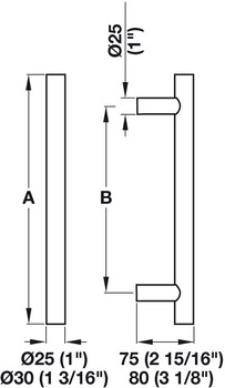 Product Title: Pull Handle, Stainless Steel, 30 x 500 mm (1 3/16" x 19 11/16")