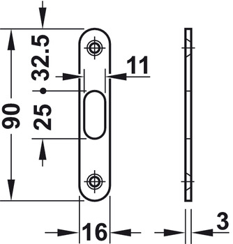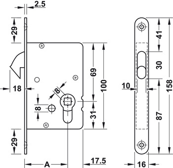 Category: Mortise Locks, Oval, Backset A= 50 mm (1 31/32"), Forend width 16 mm, for residential areas, for wooden sliding doors