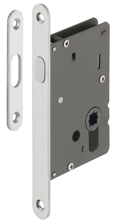 Product Title: Mortise Locks, Oval, Backset A= 50 mm (1 31/32"), Forend width 16 mm, for residential areas, for wooden sliding doors, Matt Nickel