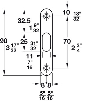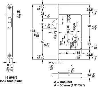Category: Mortise Locks, Oval, Backset A= 50 mm (1 31/32"), Forend width 16 mm, for residential areas, for wooden sliding doors