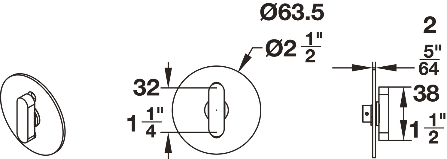 Hafele 911.26.940 BL100 Privacy Lock, for Sliding Barn Door Round trim, T1 thumb-turn, matt stainless steel, 2 1/4" lock backset