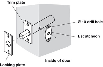 Hafele 911.62.272 Security Bolt, Mortice Door, Backset 32 mm, Brass or Stainless Steel Key turn operated, Satin stainless steel