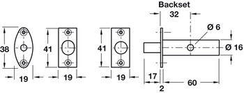 Category: Security Bolt, Mortice Door, Backset 32 mm, Brass or Stainless Steel, Key turn operated, Satin stainless steel