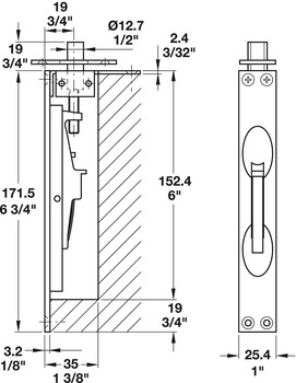 - Installation : Recessed into edge of door at top and/or bottom