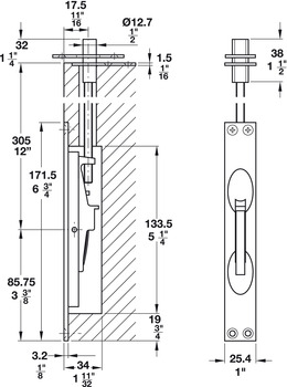 Category: Flush Bolt, Lever Action, Metal or Wood Doors, throw 32mm (1 1/4")