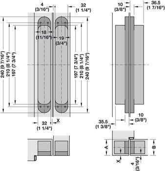 - Receiving Elements, for Simonswerk TECTUS TE 240/340/525/526/540/541/640/645 3D (A8) SZ (SZ/1) concealed mortice hinge