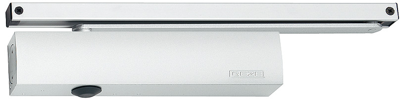 Hafele 931.10.609 Overhead door closer, TS 5000, EN 2-6, with guide rail, Geze Standard installation on pull side, overhead installation on push side, silver coloured