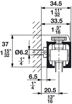 Hafele 940.40.201 Angled Profile, Pre-drilled for HAWA Junior 40 Upper Tracks, length: 2 m (6" 6 3/4")