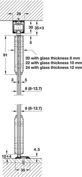 - For glass thickness with tempered safety glass : 8 mm, 10 mm, 12 mm, 12.7 mm