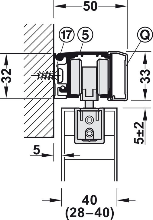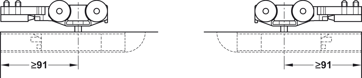 Category: Sliding Door Hardware, Häfele Slido D-Line11 50I / 80I / 120I, set without running track, for 1-leaf and 2-leaf wooden sliding doors, ceiling installation and wall mounting, door height adjustable