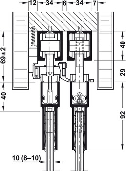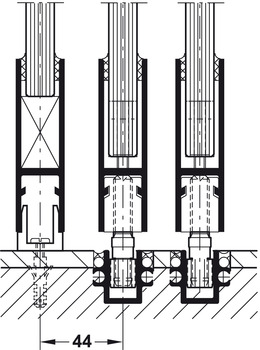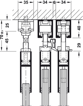 Category: Sliding Door Hardware, Hawa Telescopic 80/G set, For 2 sliding doors, without running track and floor guide, Without running track, with floor guide