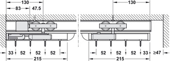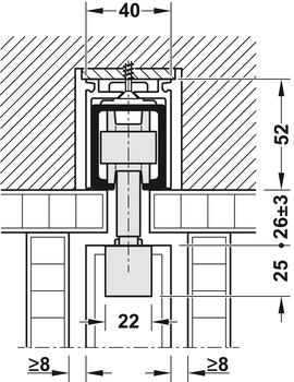 - Installation reference : subsequent disassembly of the running track is possible without opening the wall, running gear and soft and self closing mechanism can be removed, stopper position in the wall pocket is readjustable