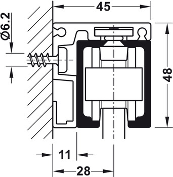 Product Title: Angle Profile, Pre-Drilled for Upper Tracks, For wooden door systems, 6 m (19' 8 1/4") Length; for Junior 80