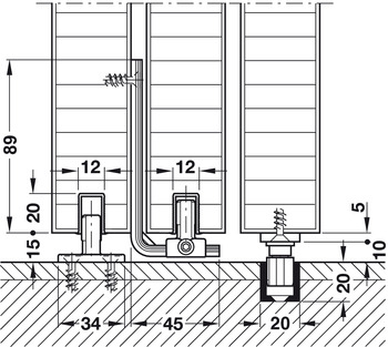 Hafele 940.81.008 HAWA Telescopic 80/3 Fitting Set, three panels- Hardware > Building Materials > Door Hardware