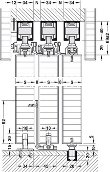 Category: Sliding Door Hardware, Hawa Telescopic 80/3 (for 3 doors), set, Top Hung System, for 3-leaf sliding doors